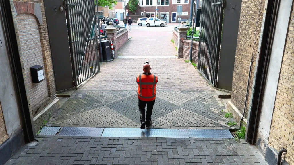 We lopen eerst een rondje over het te scannen terrein. Zijn alle deuren en hekken toegankelijk? Waar liggen eventuele obstakels? Tijdens deze verkenning bepalen we ook de beste plekken voor onze Ground Control Points (GCP’s).